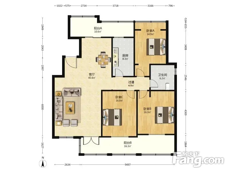 户型介绍该房在小区中间,不临街,不靠路。户型方正,全明通透,南北阳台,采光好。
