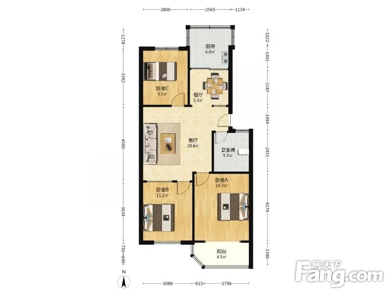 香山花园 3室2厅 93.68平