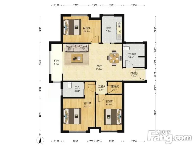 3室2厅1卫